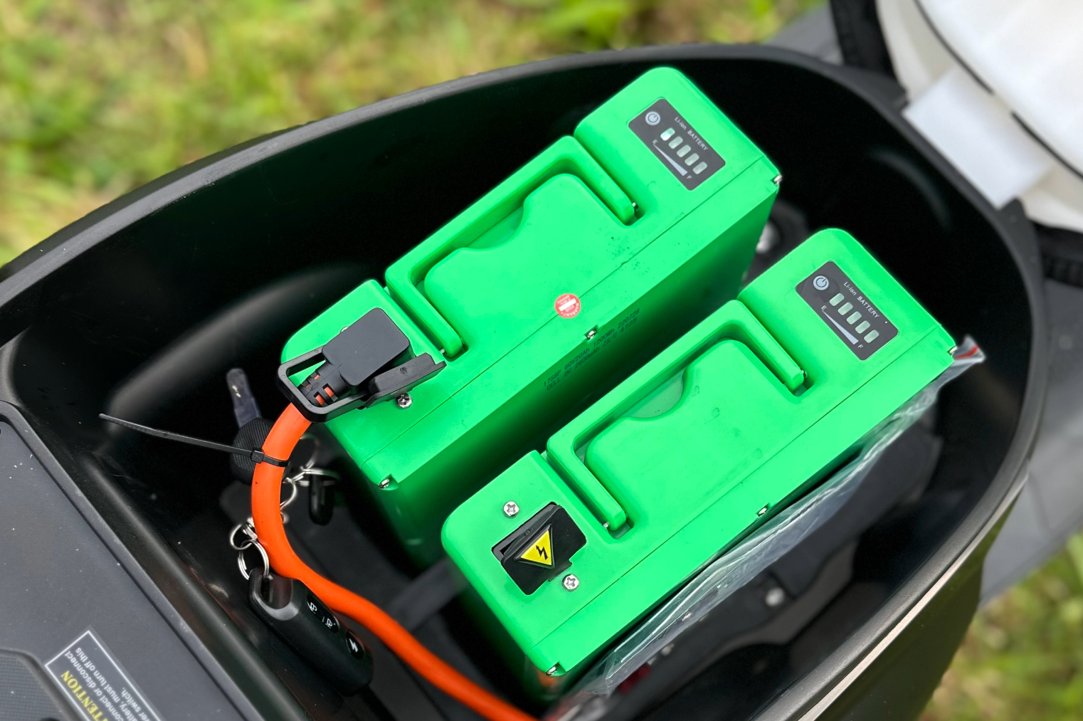 Met onze lithium accu kan je zorgeloos op pad. Opzoek naar een tweede accu, om de actieradius te vergroten? Onze accu's zijn makkelijk uitneembaar en verwisselbaar. Zo kom je nooit stil te staan onderweg. De scooter wordt standaard geleverd met een 1x 60v20ah accu.