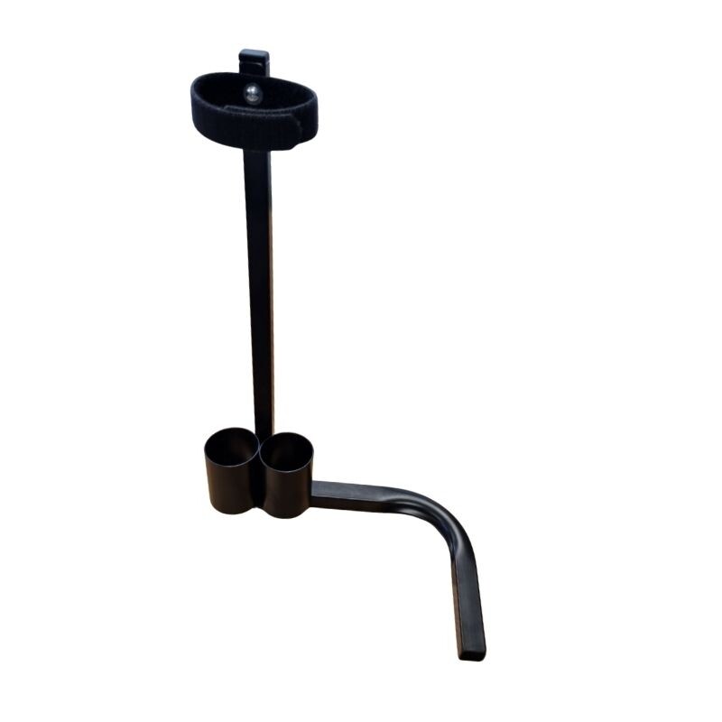 Uw stokken zijn makkelijk mee te nemen in twee metalen houders en worden aan de bovenkant met klittenband bevestigd.