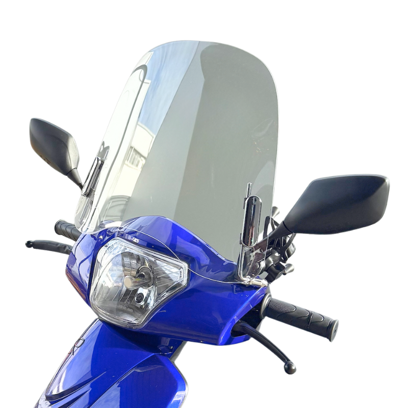 Een windscherm kan bekrast of beschadigd raken wanneer je scooter een keer omvalt en wanneer je veel zand tegen je scherm hebt gekregen in de loop der jaren. Hierdoor kan het zicht minder worden. Ook donker getinte (smoked) windschermen kunnen het zicht bemoeilijken wanneer je in het donker er doorheen wilt kijken. Een smoked windscherm is uiteraard heel mooi, maar wanneer je veel ‘s-avonds de weg op moet, dan is een transparant (helder) windscherm misschien een betere keuze.