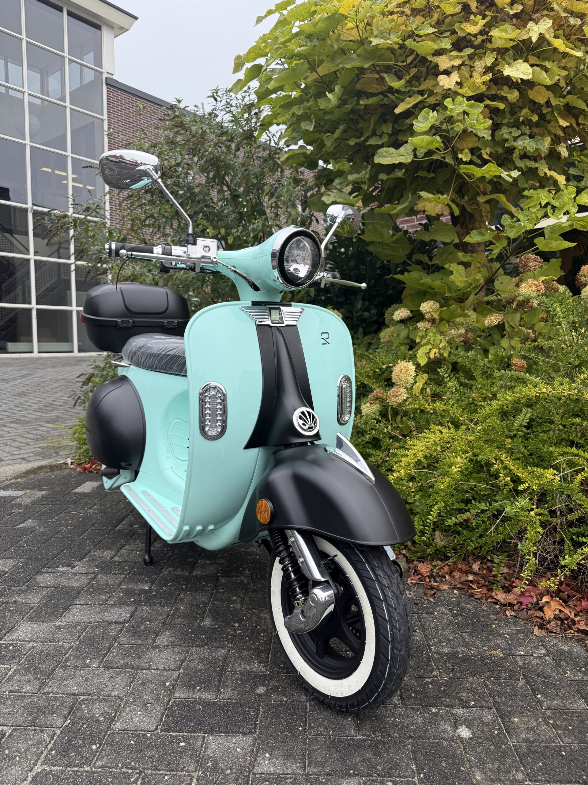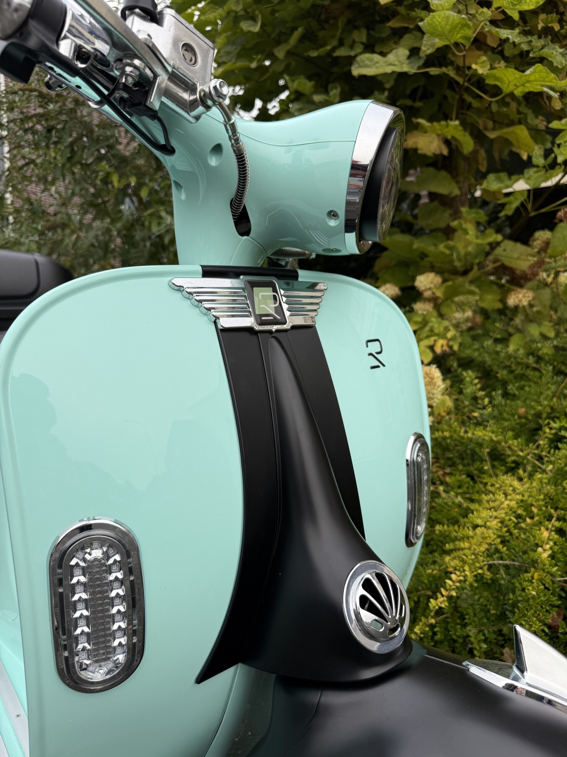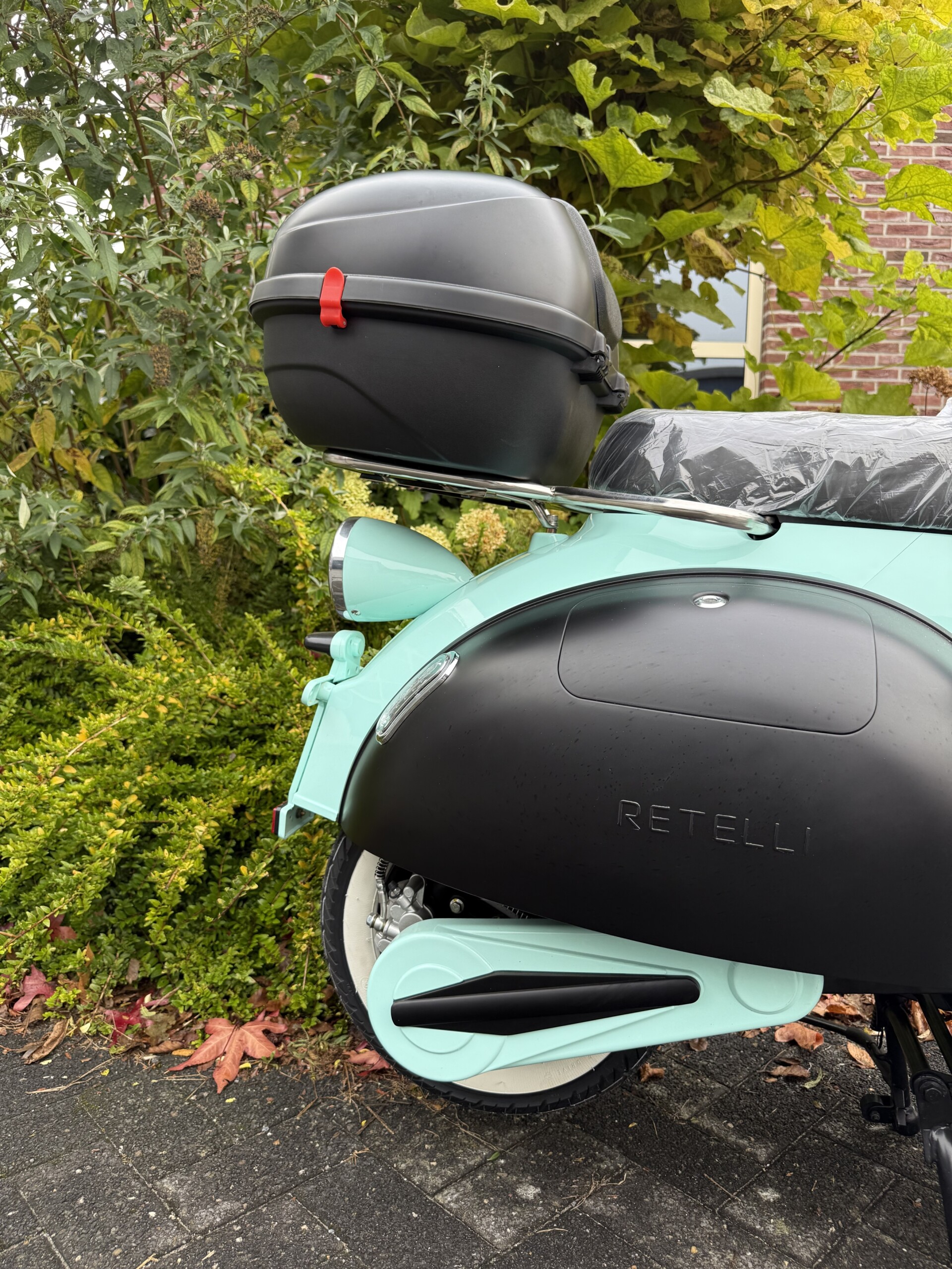 De Retelli elektrische scooter met retro uiterlijk, de Vecchio Classico, is de oude klassieker onder de hypermoderne e-scooters. Deze zeer complete retro elektrische scooter is voorzien van een aantal prachtige retro elementen, waaronder de retro ronde vormen, de old-school kleurdesigns en white-wall banden. Bovendien biedt de retro scooter plek voor twee uitneembare lithium accu’s.